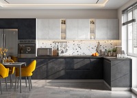 Глянцевые фасады в комбинации двух цветов. Длина гарнитура 1,4–2,6 м.
